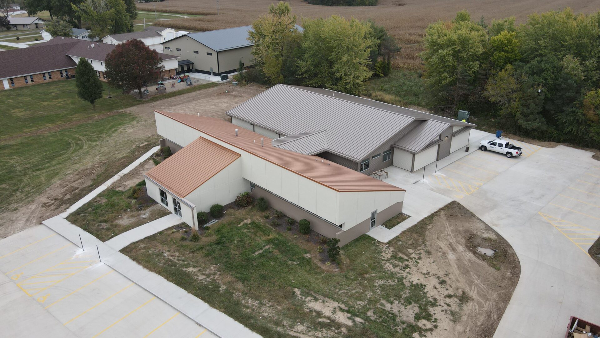 This project consisted of a new addition and renovation totaling 7,100 SF of new office, storage, and meeting areas and 5,450 SF of renovated medical space converted into office and reception areas. Work included architectural metal siding, standing-seam roofing, façade upgrades, and a new concrete parking lot.